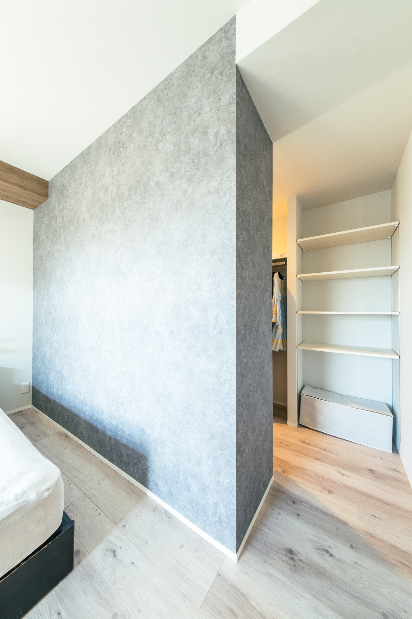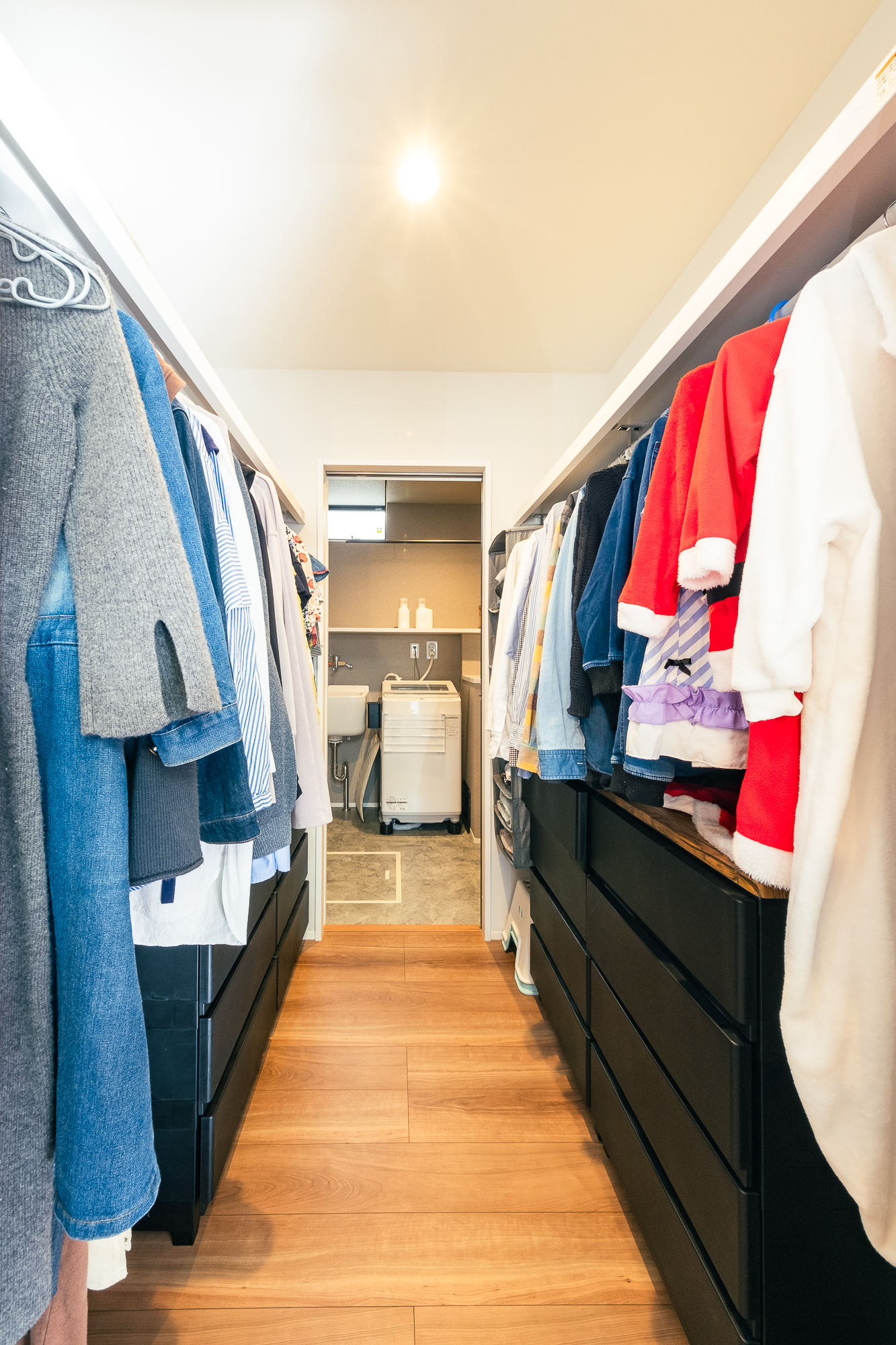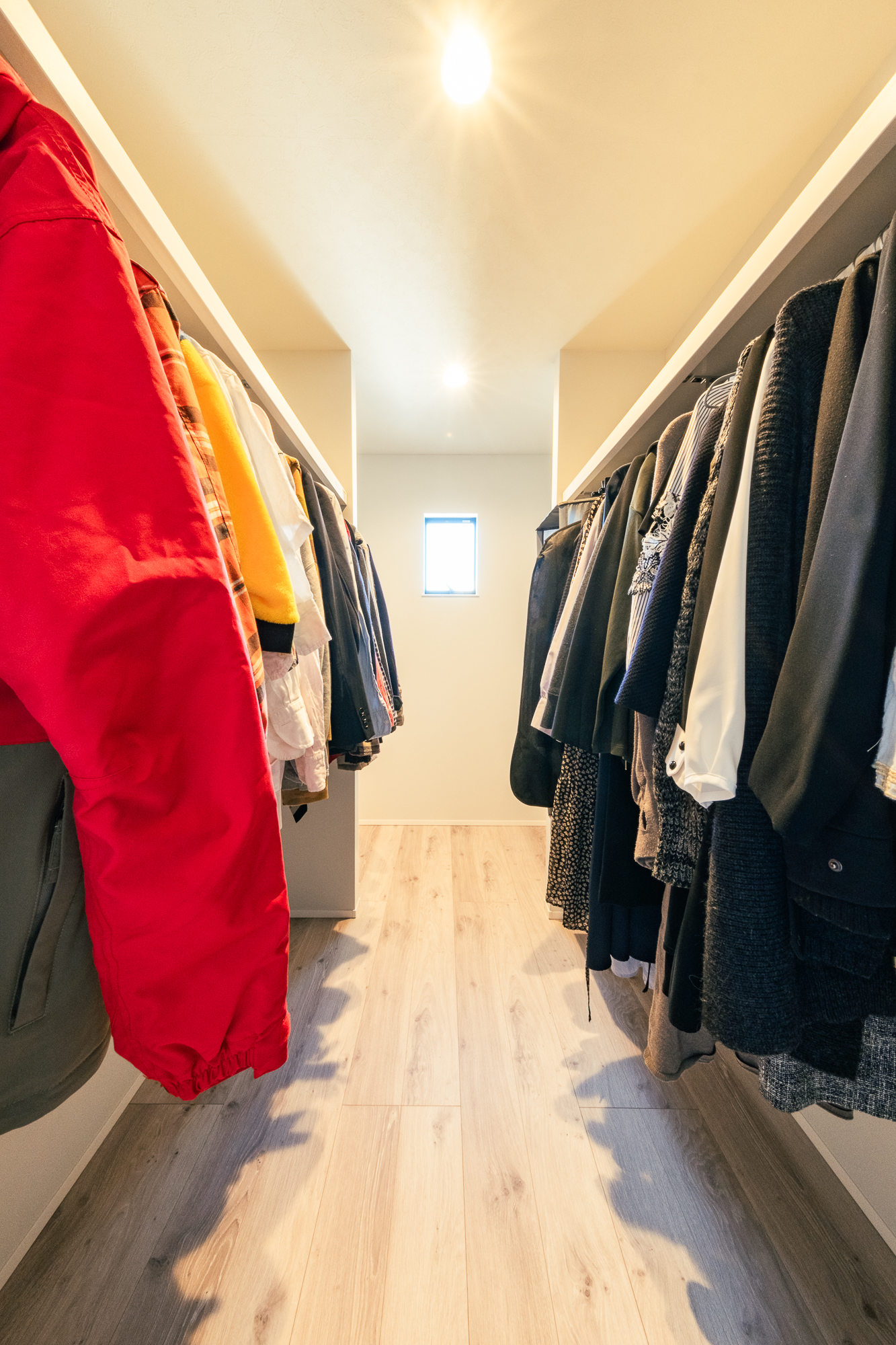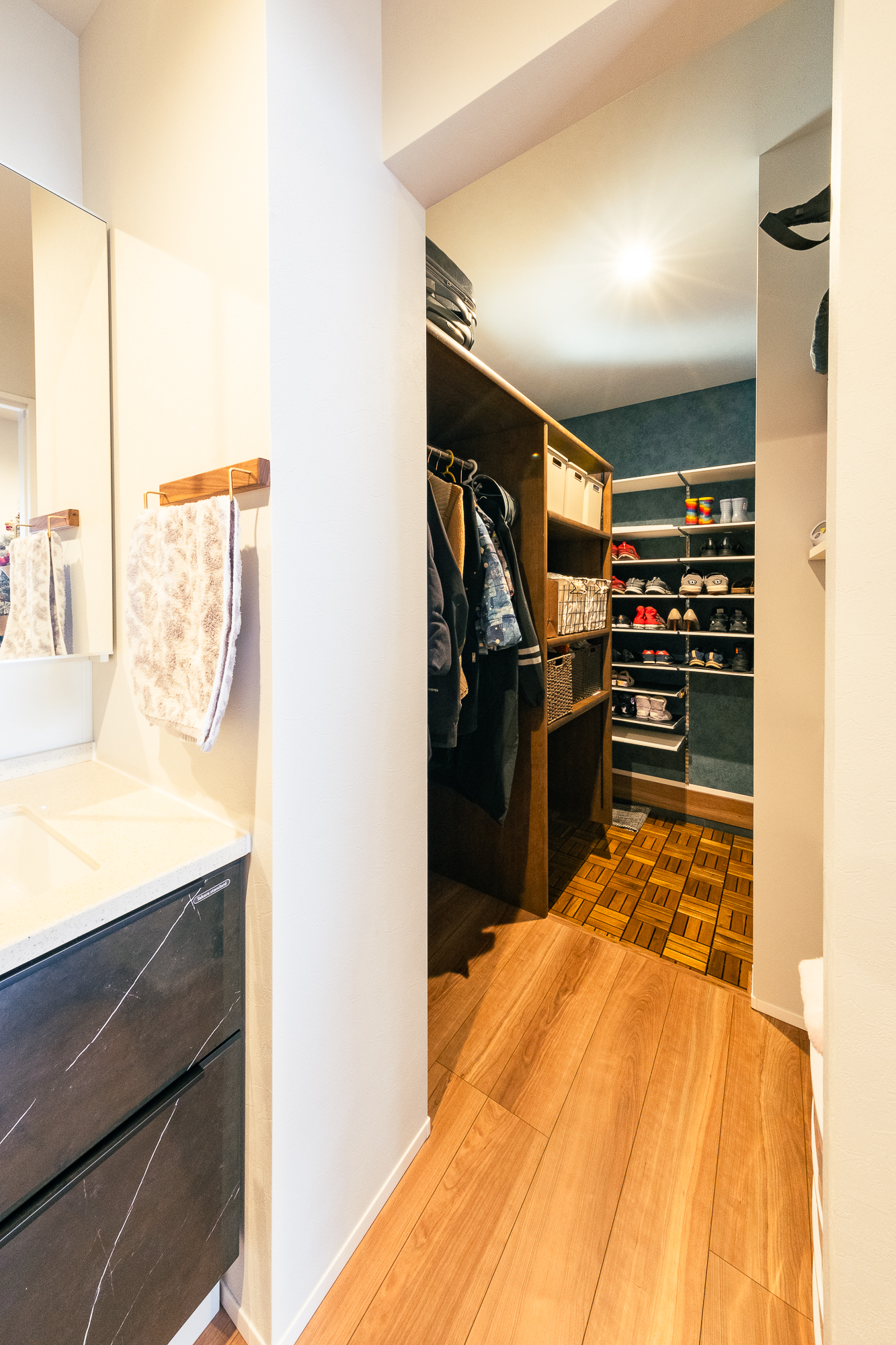 両サイドに大量のお洋服をしまえるだけでなく、W.I.C奥には書斎スペースとして。または布団もしまえるように空間計画されました。